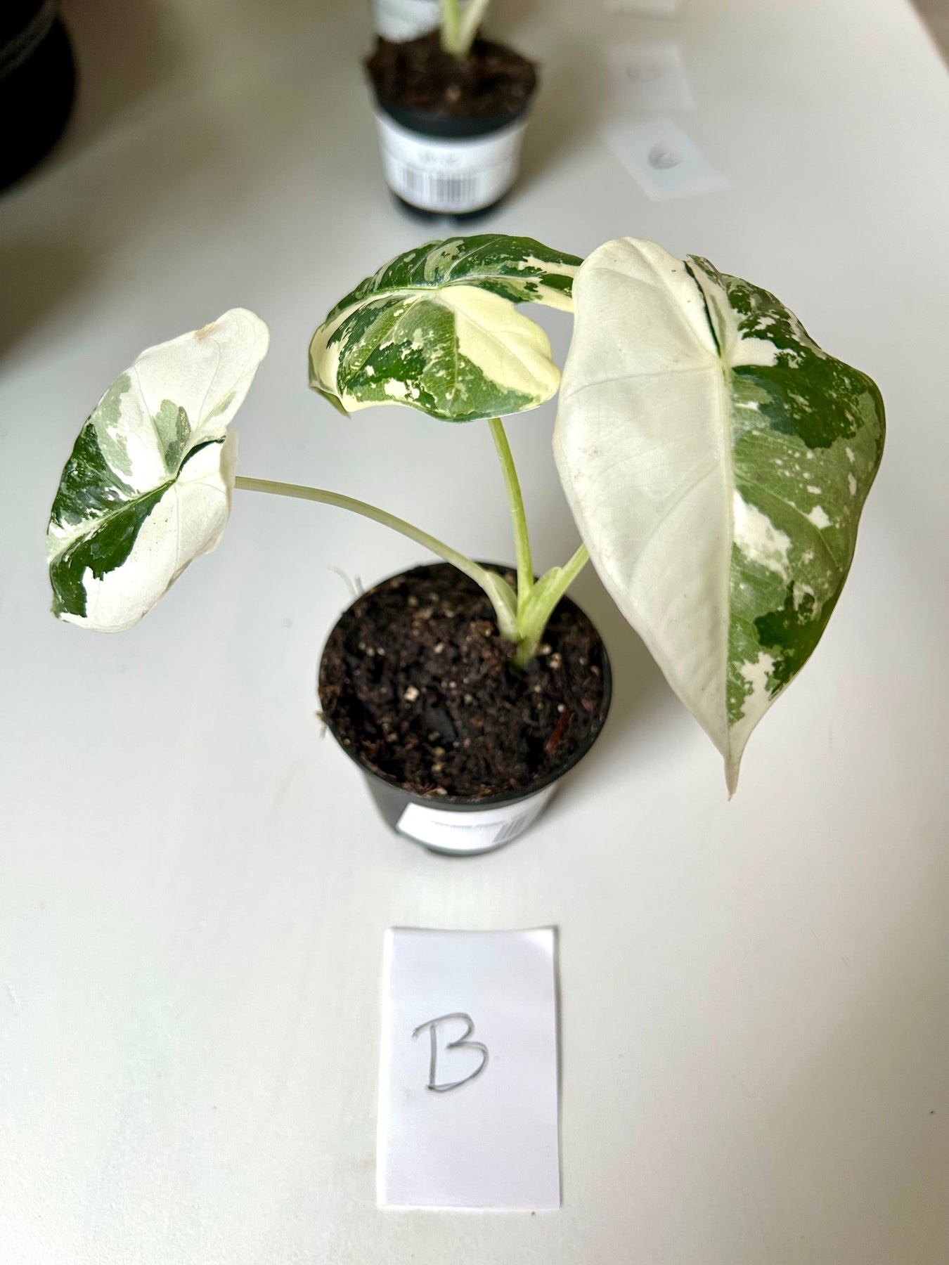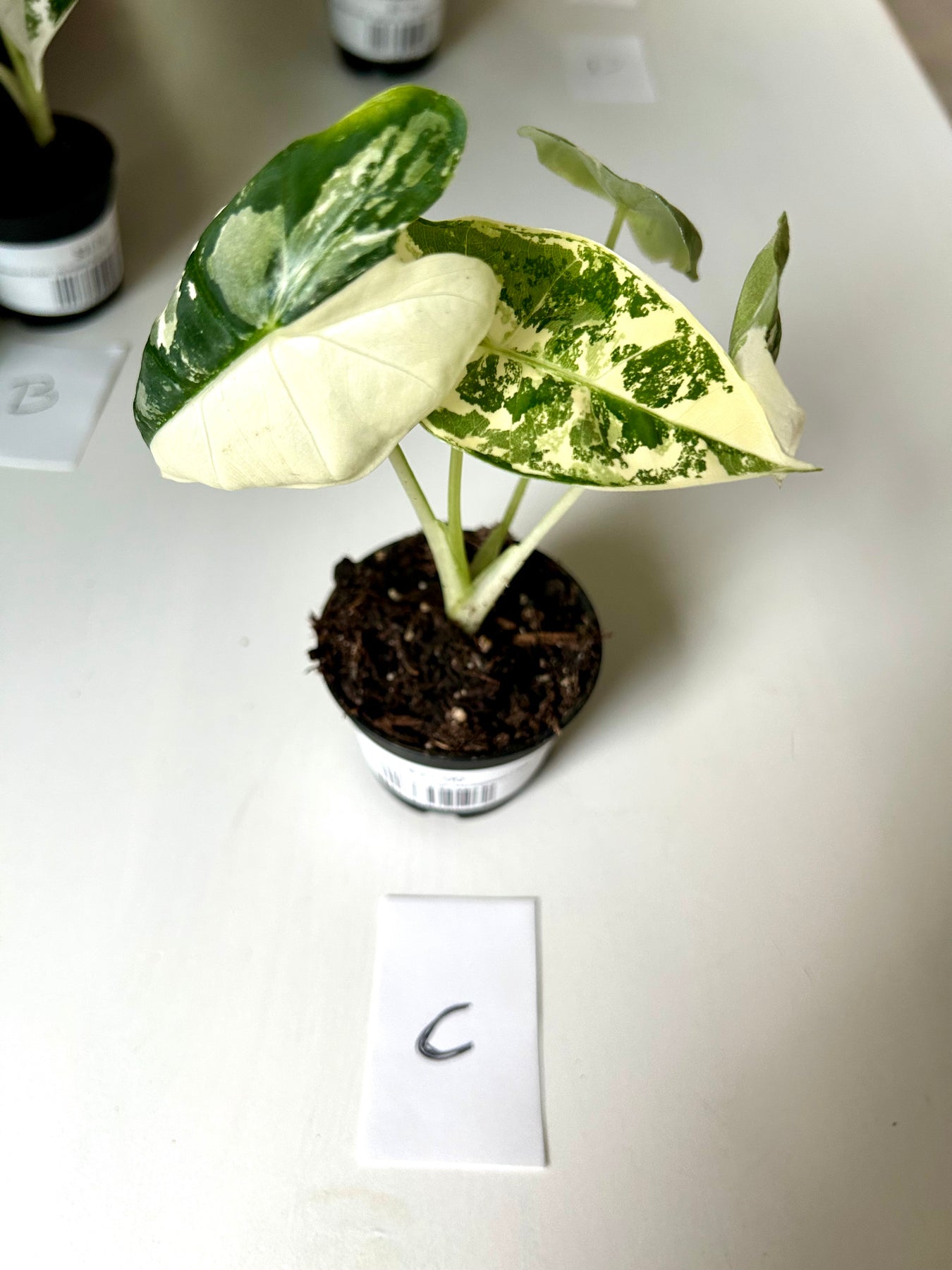 Light: Alocasia prefers bright, indirect light. It can survive in medium light conditions, but growth may slow. The variegation on its leaves will be more pronounced in higher light. Do not put it in full, direct sunlight as it will burn the foliage.