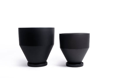 The Gemstone Jouet showcases a captivating shape, reminiscent of a cylinder in the upper portion that gracefully tapers down to an appealing point. This well-proportioned form exudes charm in its smaller sizes, while creating a striking impact with its intriguing angles in the larger sizes. For plants that thrive in a cozy environment, the Jouet provides a gentle embrace at the base, ensuring a sense of security for their roots. All pots have drainage holes and footed water saucers & are suitable for both indoor & outdoor use.