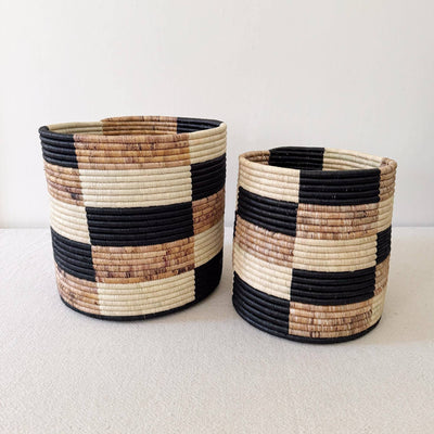 These woven basket planters are handmade by our artisans in Gitarama, Rwanda. The women hand-dye and weave the fibers into these beautiful works of art. The raffia is woven around sweetgrass, a fragrant grass with a subtle sweetness. Use these African baskets as a storage basket, a plant holder, or to brighten up a space! Plant not included.