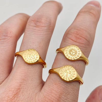 Moon Sun Stars Goddess 18K Gold Plated Ring - FGS/MS