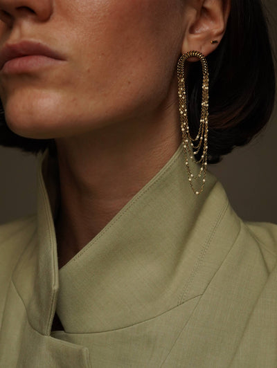 Earrings in the form of a bracelet chain, fine chains studded with enamelled colored beads