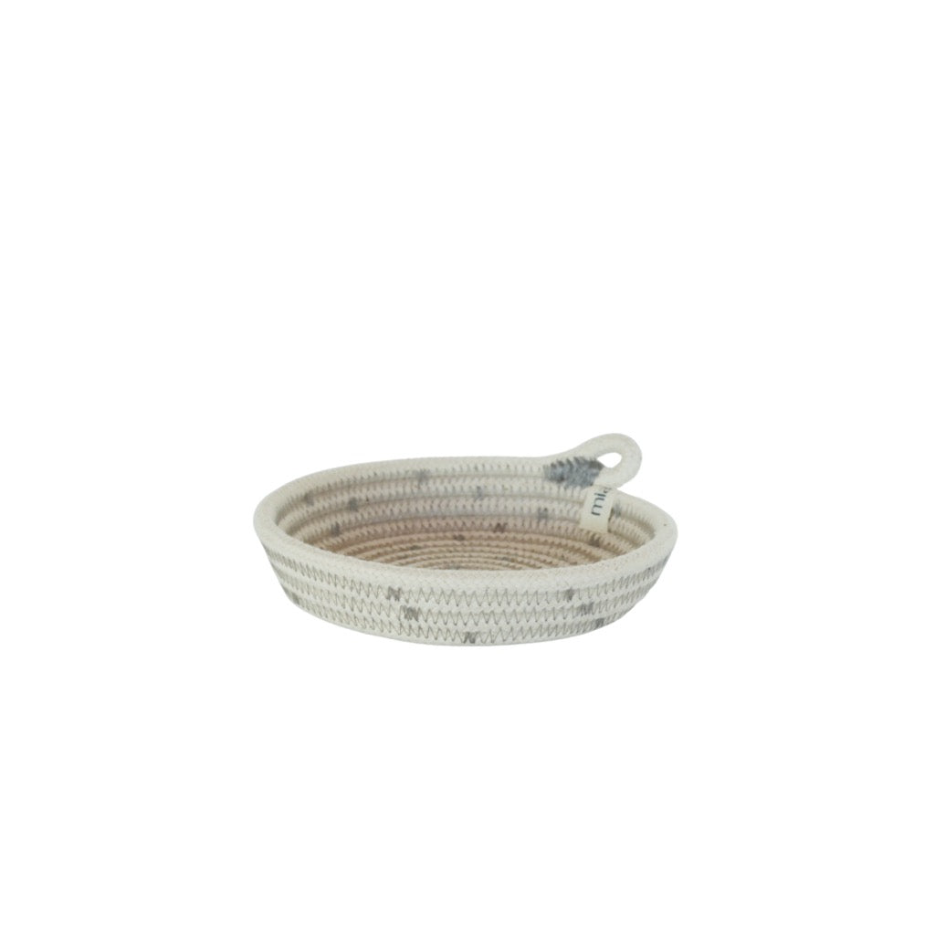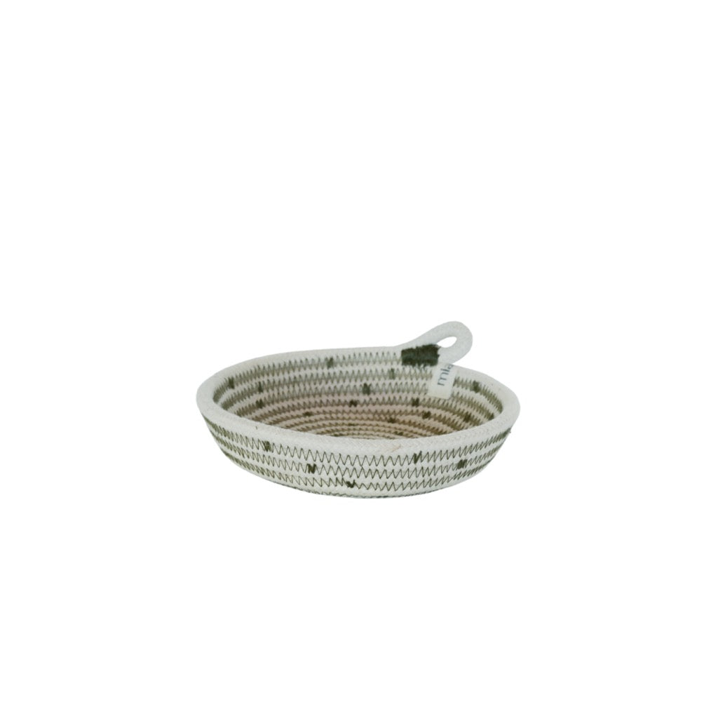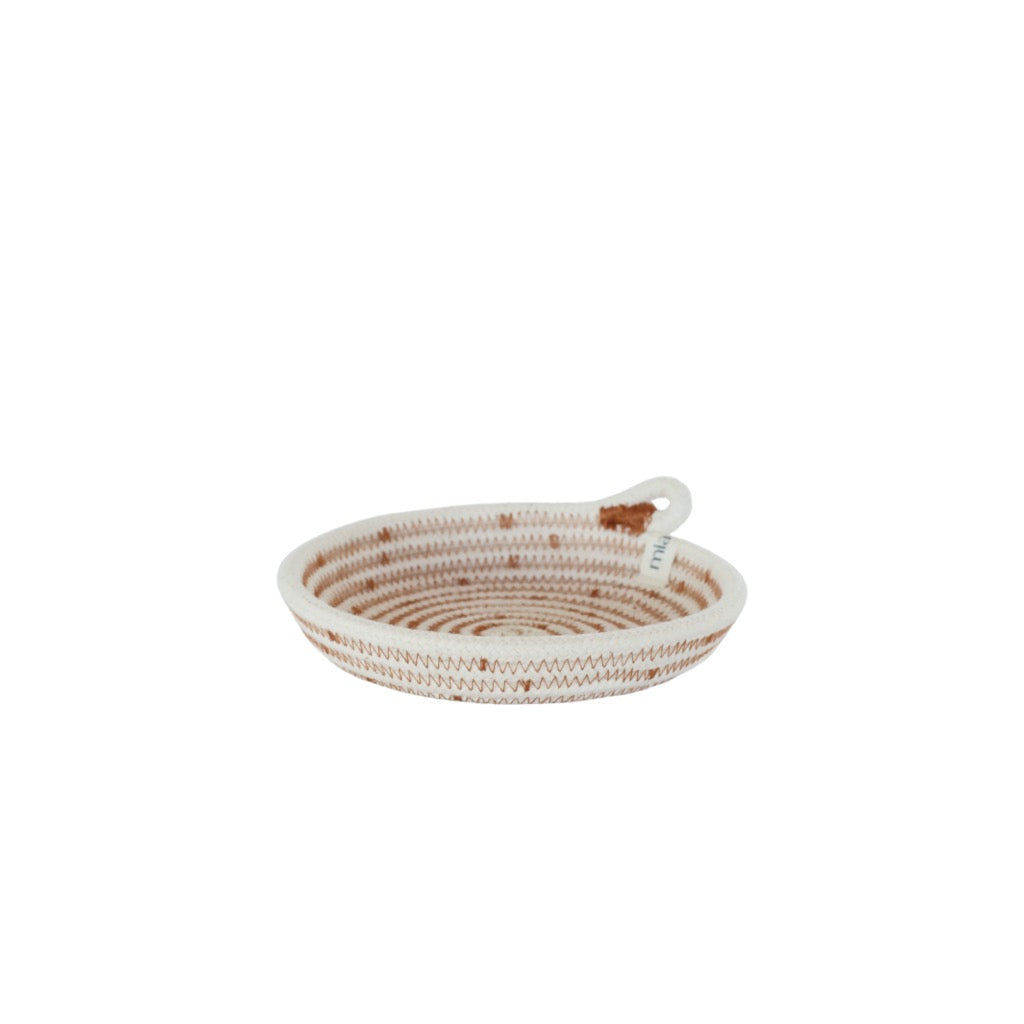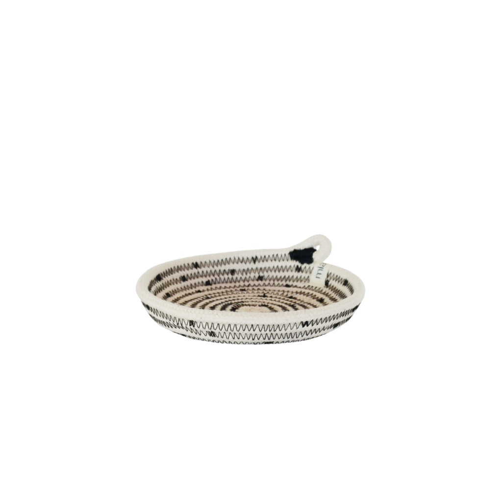 Make every day a polka dot party day with these fun cotton rope baskets from our Petite Collection! These petite products from this new collection make the perfect gift. Or gift them to yourself to keep your odds and ends neat at home or on your desk. Add some fun to your home with the colours from this Safari collection! Use this cotton rope trinket tray to neatly store your jewellery on your bedside table. Or use the tray to store your coins. On your office desk, you can use the trinket tray to store things like paperclips neatly. Or you can store a pile of cotton wool on your bathroom shelf neatly in this tray. The baskets from this collection are made from 100% cotton rope. The cotton is grown locally in South Africa by farmers who are members of the Better Cotton Initiative (BCI).